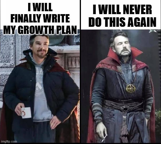 I know that. Yet it took me until early 2024 to write a real growth plan. Not a pseudo one to show my managers and say “Yes look, I have a growth plan.”