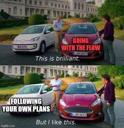 While I argued that it’s their life and they should have one, but nobody can force them to create one, it felt shallow. The underlying question was simple - Do we actually need growth plans? Do we need always aim for more and never be satisfied? Does it make us better in any way or is it also fine to go with the flow and see where life takes us?