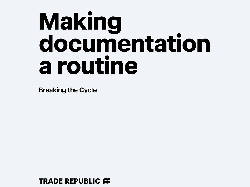 We as Trade Republic believe that documentation is the key to share knowledge and thereby improve quality. We also keep learning — So if you have good tips, please share them with us!