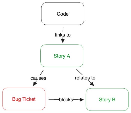 You have your stories now. Unfortunately that is not enough — If a new engineer joins your team, they will not go through all tickets and stories that have ever been written. Instead, they look at the code and wonder why e.g. you have a specific filter applied a certain line. This is why we need to connect the code with the stories. Ideally, this happens automatically because you add the ticket URL or ID in every commit that you make. Then, they can just open the annotations of the code and find out which ticket caused the last change.